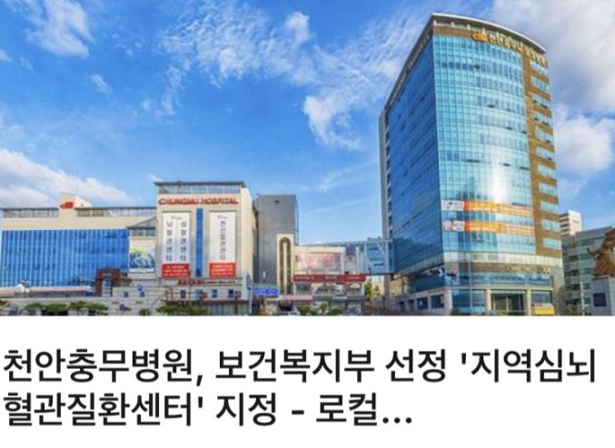 [병원소식] 천안충무병원, 보건복지부 선정 "지역심뇌혈관질환센터" 지정