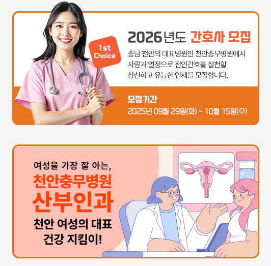 천안충무병원은 지역민의 질병예방과 관리에 한 치의 부족함이 없도록